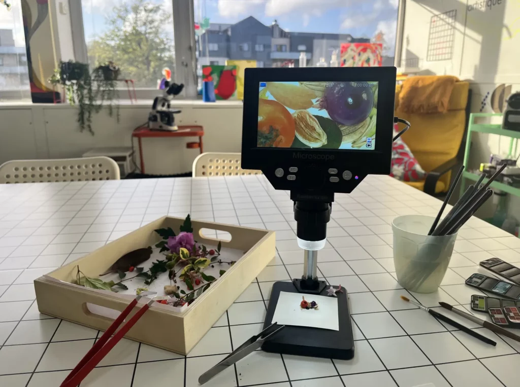 Après avoir observé au microscope différents fragments végétaux et découvert leurs motifs cachés, vous les réinterprétez à l’aquarelle pour créer une composition inspirée par la nature.
