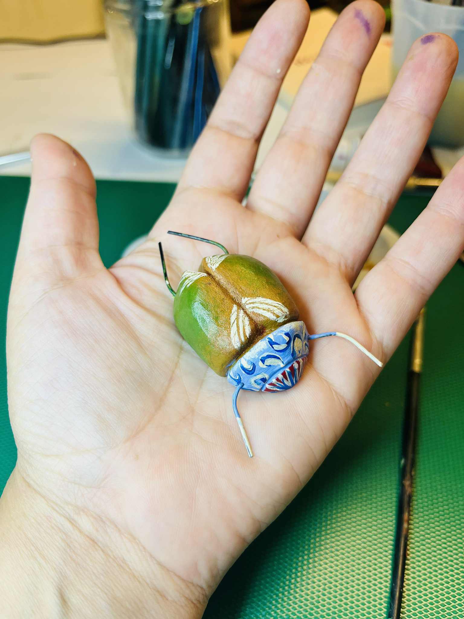 Un insecte créé de leurs mains, modelé et peint, témoin de leur observation du vivant.