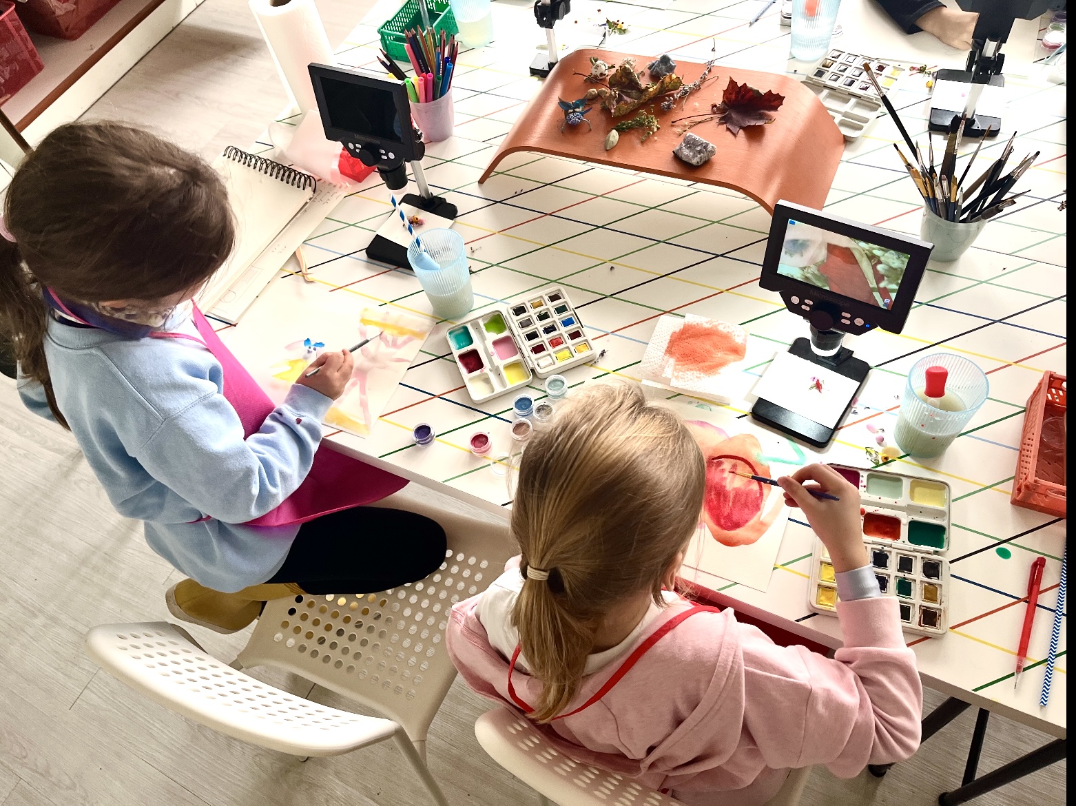Chaque mercredi, les enfants découvrent différentes pratiques de l’Artorium : peinture, modelage, microscope, collage, dessin… C’est un atelier d’expérimentation où ils peuvent manipuler, essayer et inventer à leur rythme.